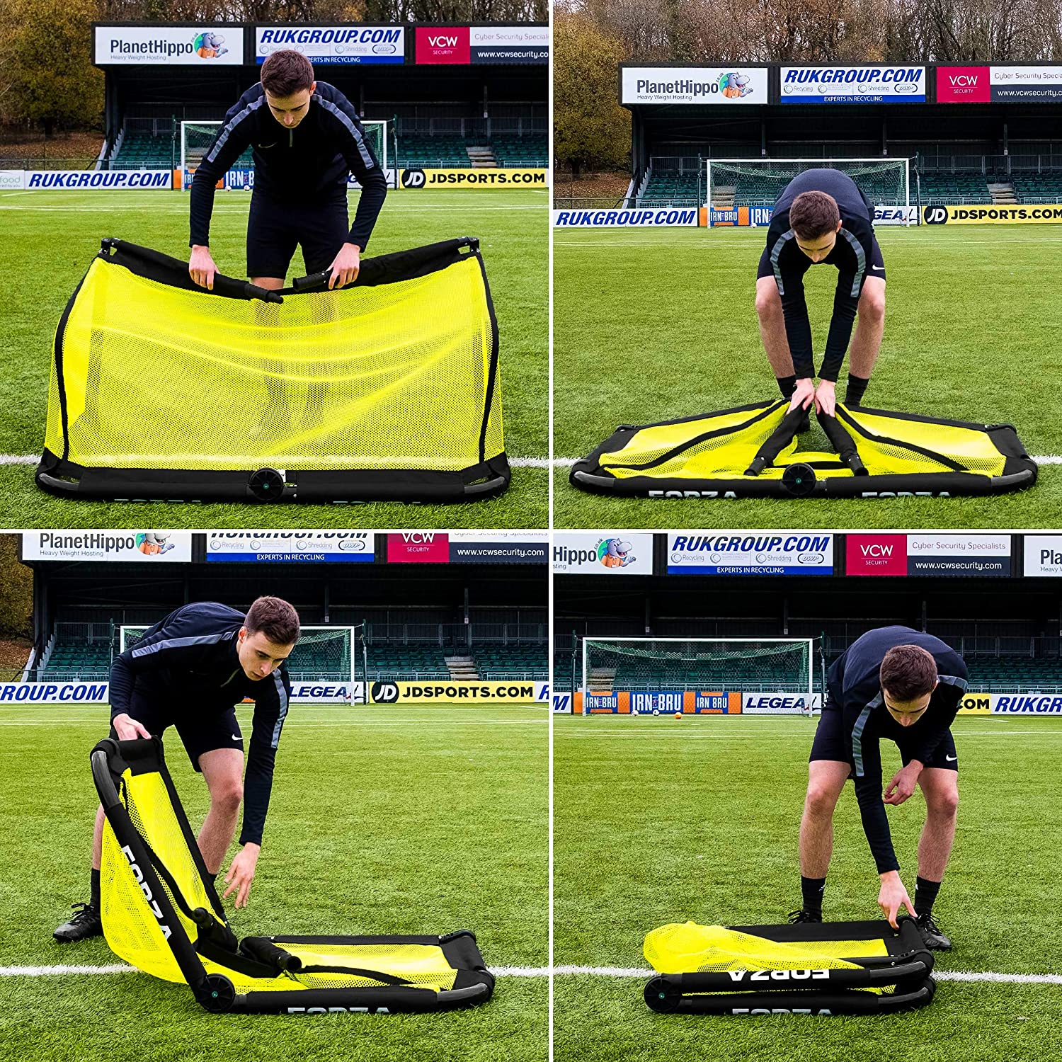• 10 SECONDS TO ASSEMBLE OR FOLD - While the heavy-duty soccer training goals come fully assembled, it can be folded away or set up in as little as 10 seconds with no tools required. This super speedy assembly process is a convenient feature perfect for schools, coaches, sports centres and players who require low-maintenance training equipment.